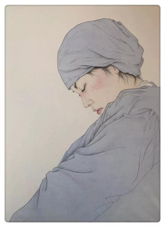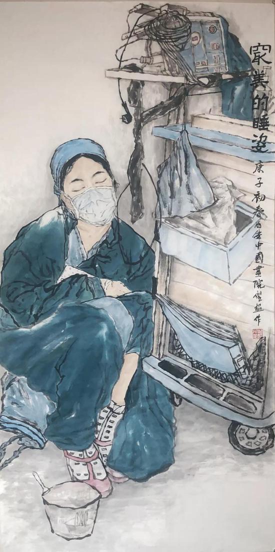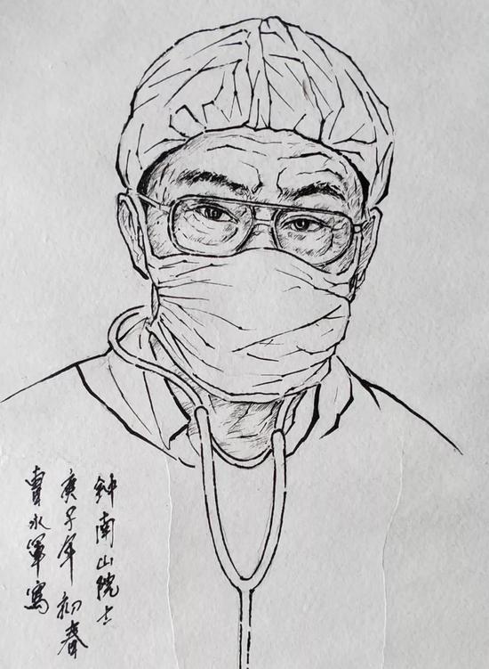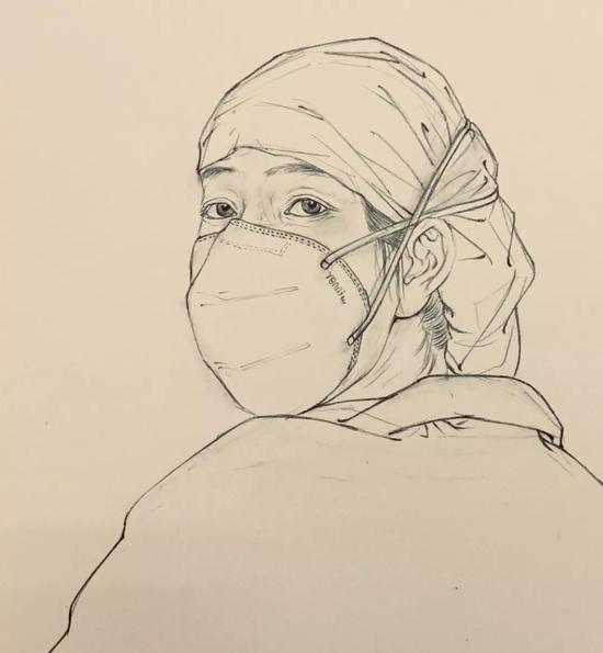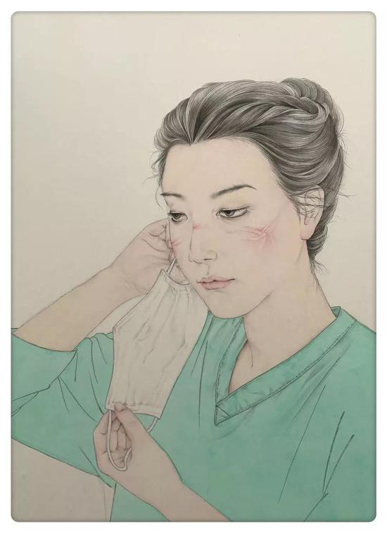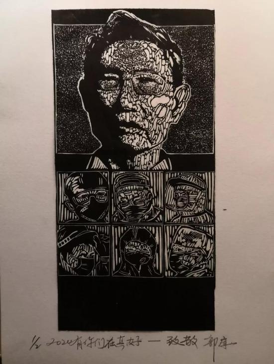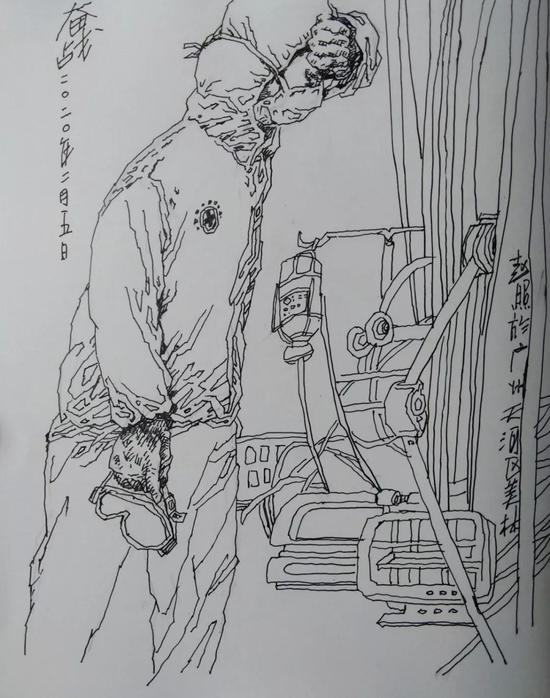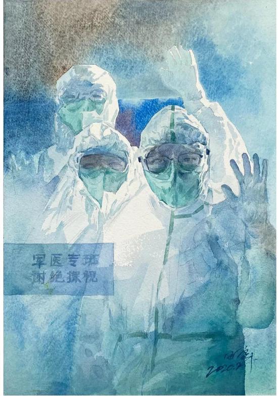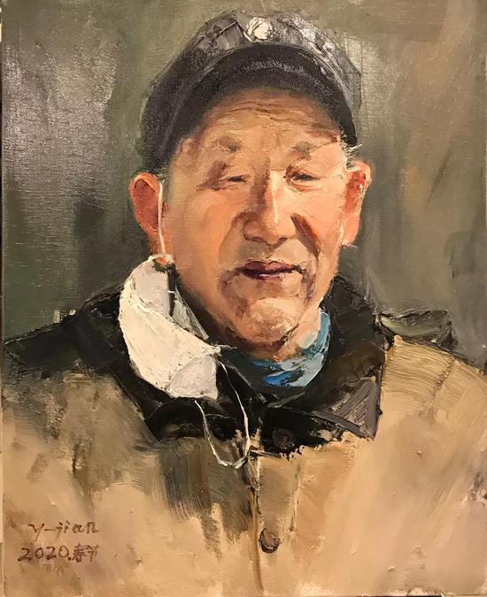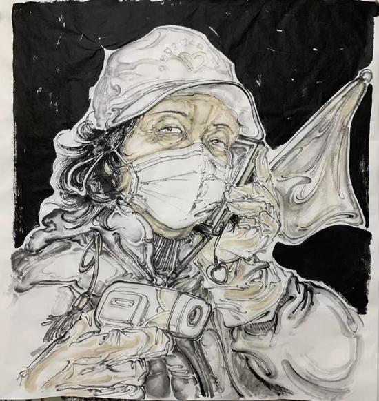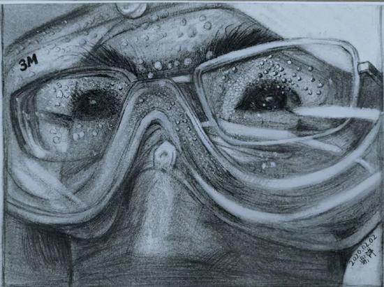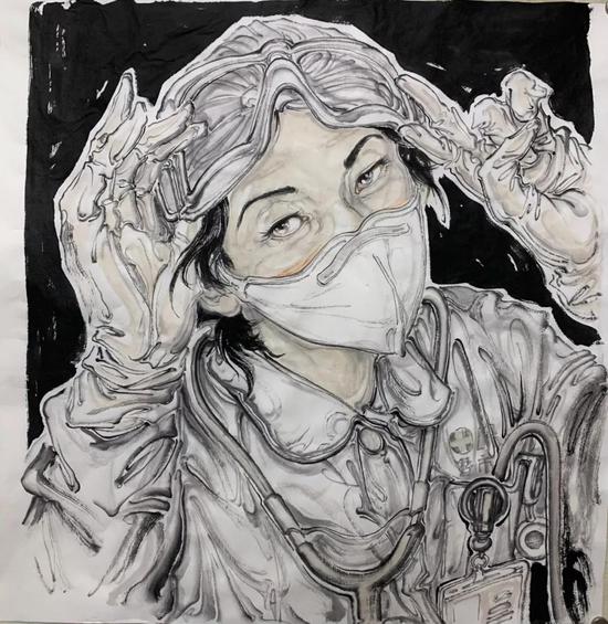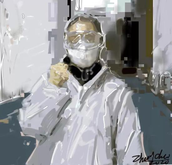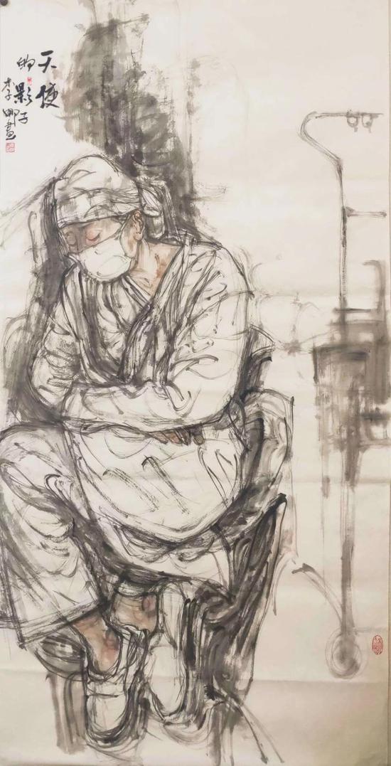 范朋杰《手拄拐杖,堅守抗疫一線的饒歆醫生》