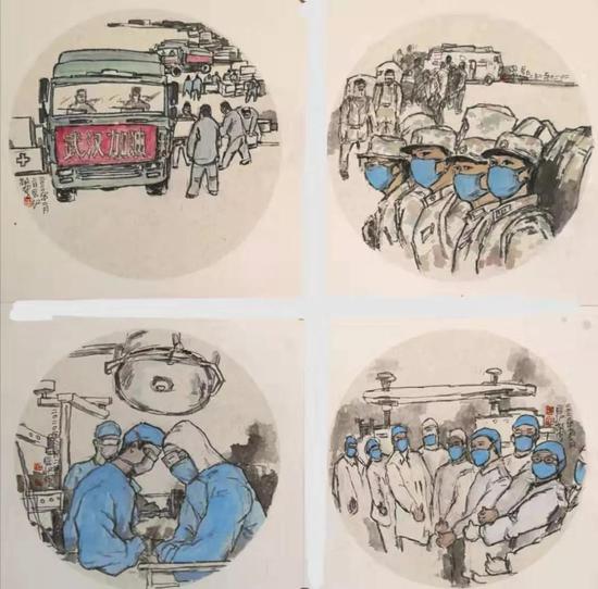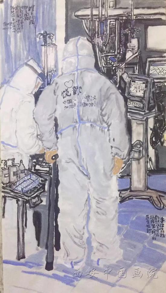 愿能狼毫化柳刀,心手相握抗疫情!西安美術工作者是熱血有溫度的!心急如焚的畫家們只愿能用手中的畫筆,為抗擊疫情的英雄們打氣加油,大家積極響應通知精神,在陜西省美協的學術支持下,畫院很短時間便征集到作品近200百多幅。